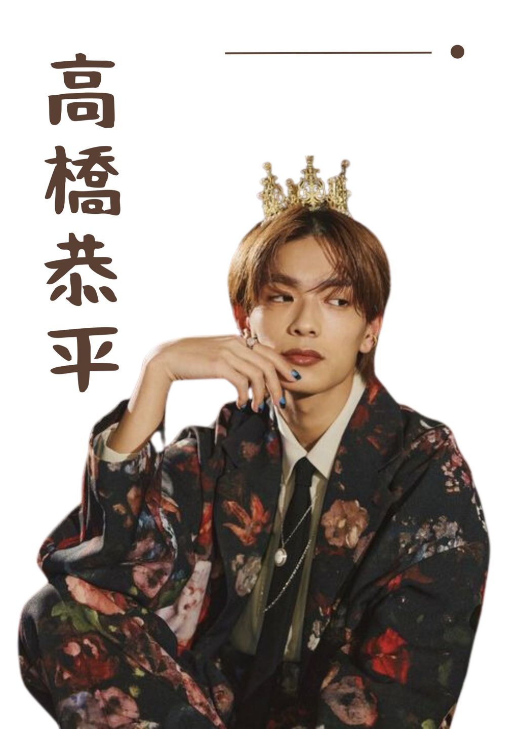 Takahashi Kyohei is a multi-talented artist who has captured the hearts of fans as a prominent member of the Japanese boy band, Naniwa Danshi. Hailing from the vibrant city of Osaka, Kyohei's journey in the entertainment industry began with a deep passion for music and a burning desire to share his talent with the world.In 2016, Kyohei's dreams turned into reality when he became part of Naniwa Danshi, a group known for their high-energy performances and engaging stage presence. With his enchanting vocals, smooth dance moves, and endearing personality, Kyohei quickly became a standout member of the band, drawing fans in with every performance.Naniwa Danshi, whose name translates to "Osaka Boys," exudes a unique charm that reflects their Osaka roots. Kyohei, being a native of the city, embodies this spirit, infusing his performances with the warmth, humor, and down-to-earth nature that Osaka is known for.As a versatile performer, Kyohei's talents extend beyond music and dance. He has also ventured into acting and variety shows, showcasing his natural charisma and versatility in various entertainment realms.Offstage, Takahashi Kyohei's genuine and approachable demeanor endears him to fans and fellow artists alike. He is known for his kindness towards fans, making time for interactions, and expressing gratitude for their unwavering support.Over the years, Naniwa Danshi, led by Kyohei's captivating presence, has achieved significant milestones and garnered a dedicated fan base in Japan and internationally. Their music and performances have brought joy and inspiration to countless admirers, further solidifying their position in the ever-evolving world of Japanese entertainment.